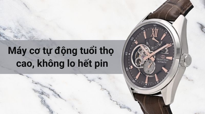 - Đồng hồ cơ tự động (máy Automatic) có tuổi thọ cao, không lo hết pin, không cần lên dây cót thường xuyên, thời gian trữ cót khoảng 40 tiếng.