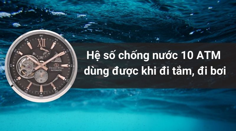 - Được trang bị hệ số chống nước 10 ATM nên bạn có thể dùng mẫu đồng hồ này dùng khi đi tắm và đi bơi.