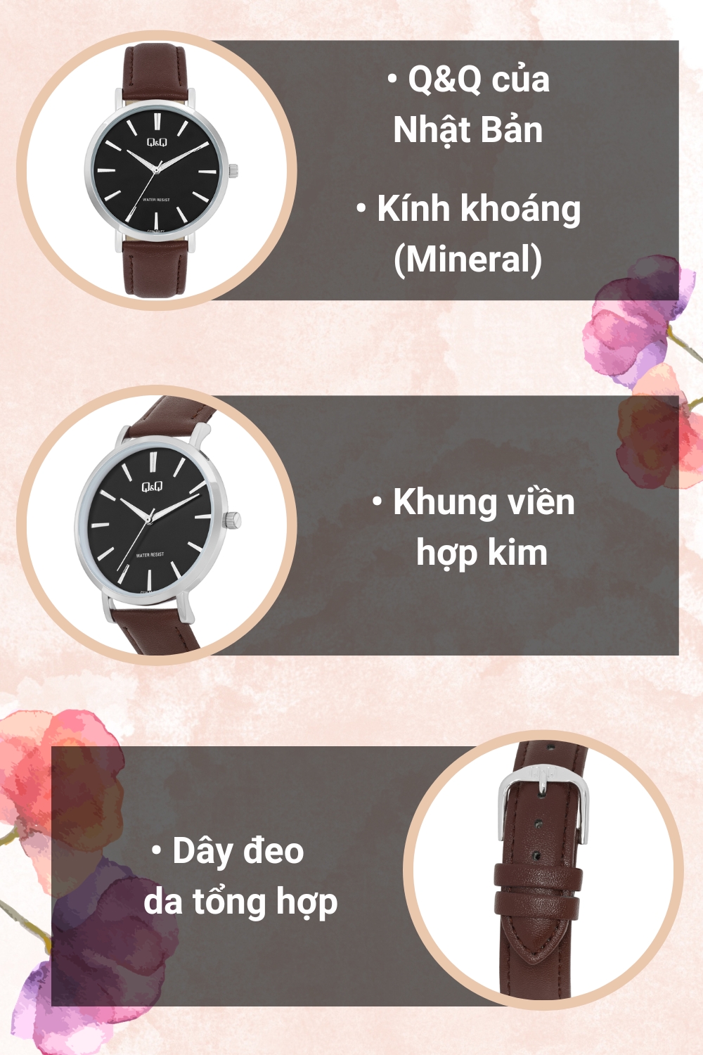 - Q&Q là thương hiệu chuyên kinh doanh trong lĩnh vực đồng hồ thời trang nam, nữ và trẻ em. Đồng hồ Q&Q đã được nhiều khách hàng tin cậy và đánh giá cao.