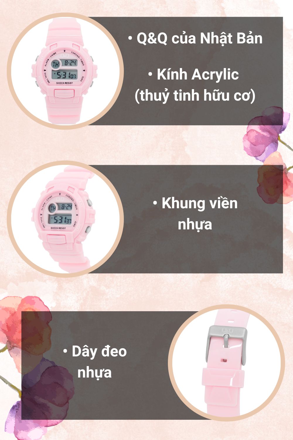 - Sau hơn 40 năm thành lập, đồng hồ Q&Q đã được người dân ở hơn 120 quốc gia mua và yêu thích.