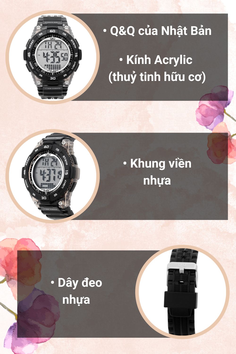 • Bạn cũng không cần phải lo lắng về việc đọc giờ trong bóng tối vì sản phẩm này được trang bị đèn nền.Ngoài ra, chiếc đồng hồ Q&Q này còn có tính năng lịch ngày - thứ và lịch tháng giúp bạn luôn nắm bắt được thời gian và ngày tháng hiện tại một cách thuận tiện.