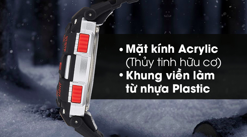 - Mặt của mẫu đồng hồ điện tử được trang bị lớp kính cứng cáp, chịu lực tốt, ít nứt vỡ khi va chạm.