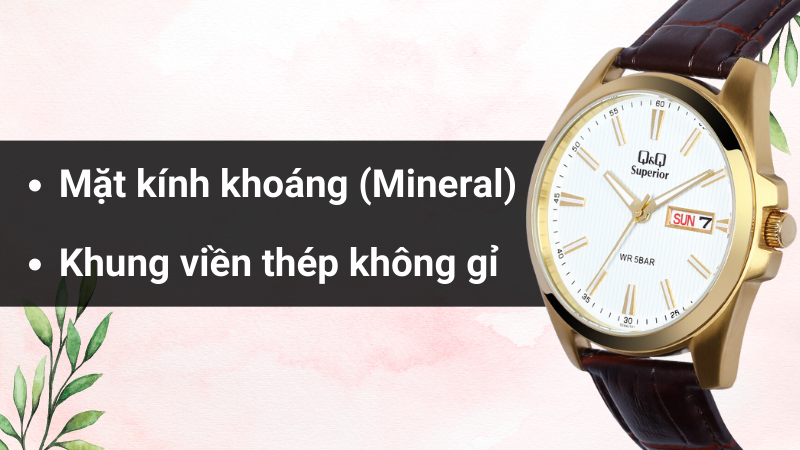 - Sản phẩm mang hơi hướng cổ điển kết hợp với phong cách lịch lãm đến từ hãng đồng hồ Q&Q, thương hiệu đồng hồ nổi tiếng của Nhật Bản