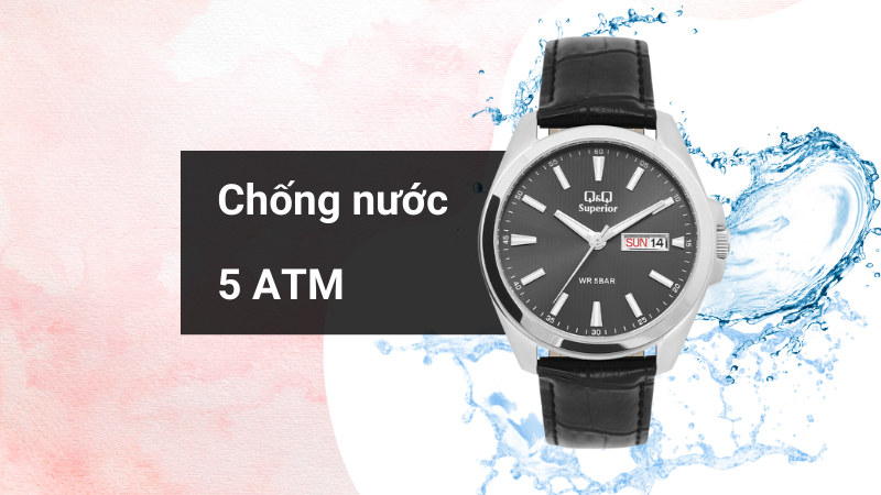 - Mẫu đồng hồ nam này có hệ số chống nước 5 ATM nên người đeo có thể thoải mái mang khi đi tắm, đi mưa và rửa tay. Không nên đeo khi đi bơi và lặn