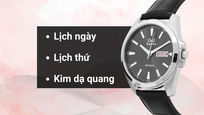 - Hỗ trợ nhiều tiện ích kim dạ quang, lịch thứ, lịch ngày trên đồng hồ giúp người đeo quản lí thời gian một cách tốt nhất