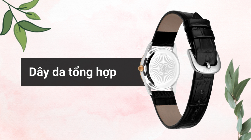 • Phần dây đeo kiểu dáng độc đáo của mẫu đồng hồ nữ được làm từ da tổng hợp dễ dàng điều chỉnh kích thước linh hoạt. Ngoài ra, khung viền đồng hồ được làm từ thép không gỉ, vừa giúp nâng tầm sang trọng của mẫu mã lại vừa bền bỉ, hạn chế ăn mòn trước tác động từ môi trường.