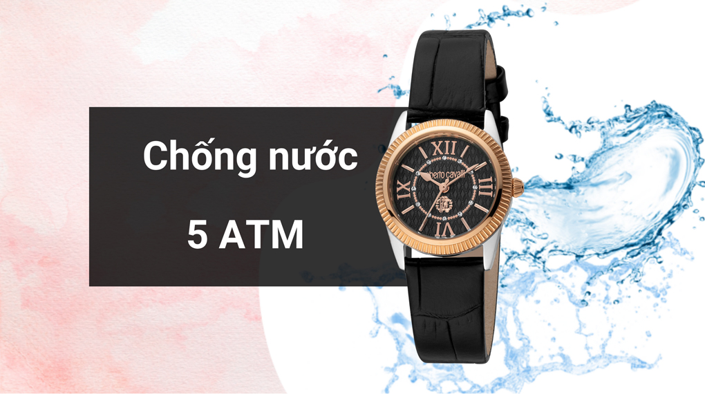 • Hệ số chống nước 5 ATM cho phép đồng hồ của bạn tiếp xúc được với nước khi rửa tay, đi tắm hoặc đeo trong các hoạt động thể thao nhẹ nhàng. Lưu ý: không đeo khi đi bơi, lặn.
