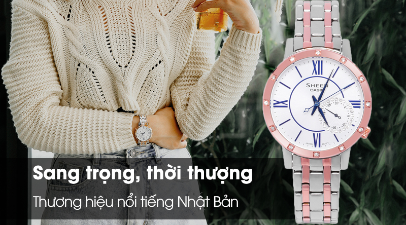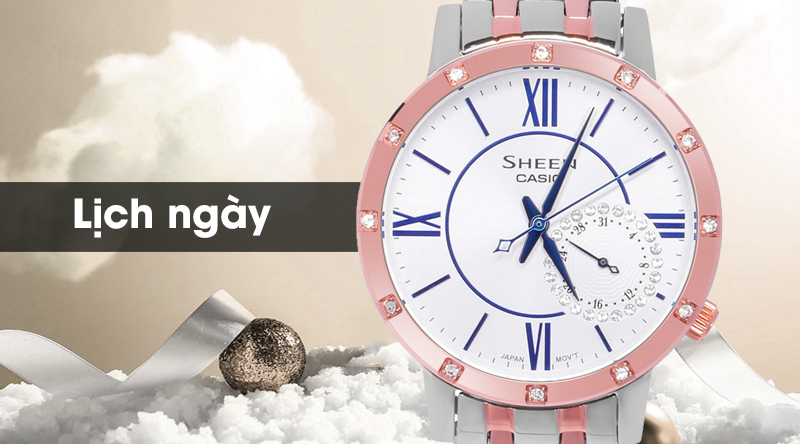 - Sheen Casio là một dòng của đồng hồ Casio, sở hữu thiết kế đẹp mắt, sang trọng, với các họa tiết cầu kì, sự kết hợp hài hòa giữa phong cách cổ điển với hiện đại đã giúp cho đồng hồ Casio Sheen chiếm được cảm tình của rất nhiều chị em phái đẹp.