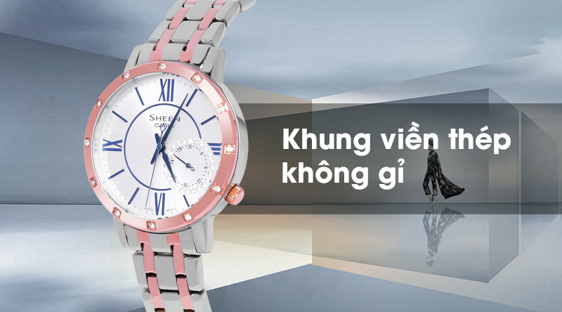 Đồng hồ nữ Sheen Casio SHE-3046SGP-7BUDF với khung thép không gỉ