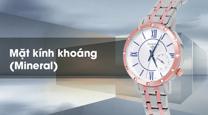 Đồng hồ nữ Sheen Casio SHE-3046SGP-7BUDF trang bị kính khoáng trong suốt