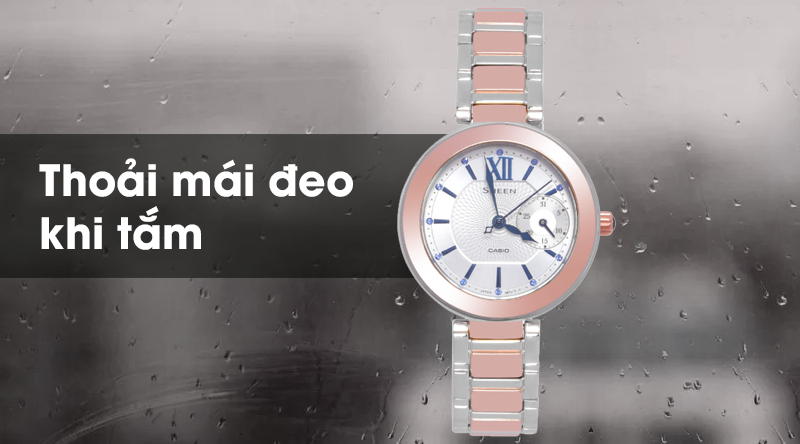 Hệ số chống nước 5 ATM, thoải mái sử dụng khi rửa tay, đi mưa. Không nên đeo mẫu đồng hồ Sheen Casio nữ khi tham gia bơi lội