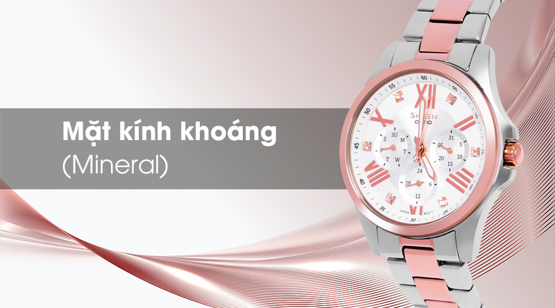 Đồng hồ nữ Sheen Casio SHE-3806SPG-7AUDR với kính khoáng trong suốt
