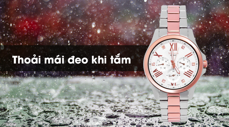 Khả năng chống nước 5 ATM, có thể đeo đồng hồ khi rửa tay, đi mưa, tắm rửa. Không nên sử dụng đồng hồ khi bơi lội
