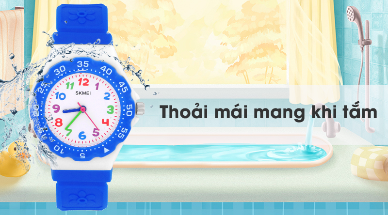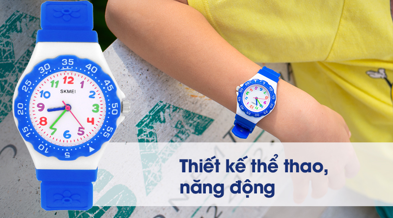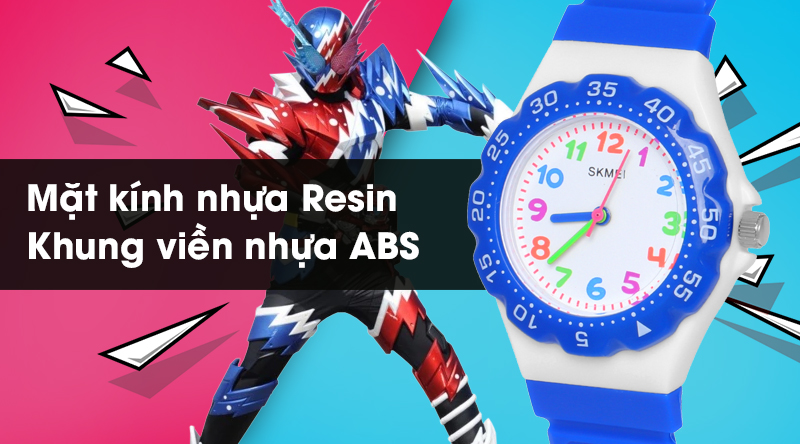 - Khung viền chiếc đồng hồ Skmei trẻ em cứng cáp và chịu lực tốt, độ bền cao, trọng lượng nhẹ cho bé thoải mái hoạt động.