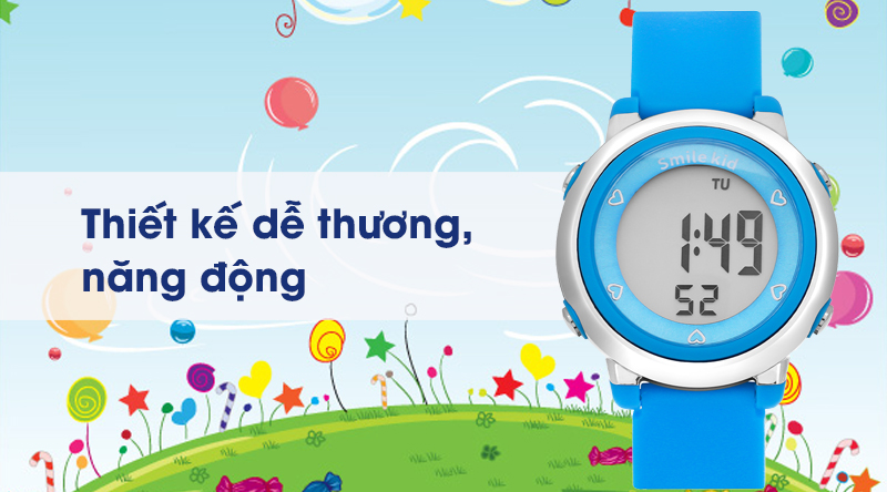- Đồng hồ Smile Kid với kiểu dáng, mẫu mã năng động, dễ thương phù hợp cho các em nhỏ, đồng thời đồng hồ Smile Kid còn là bạn đồng hành cùng các bé khi đến trường.