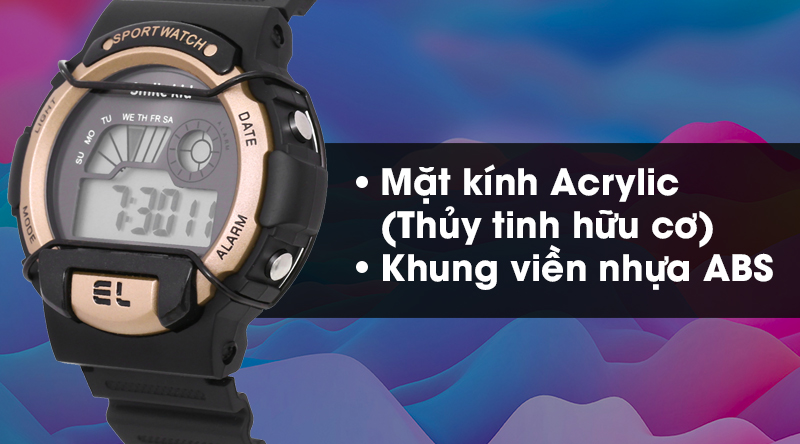 - Mặt kính chiếc đồng hồ điện tử này trong suốt, ít nứt vỡ khi va chạm nhẹ, không gây lóa mắt khi xem giờ dưới nắng.