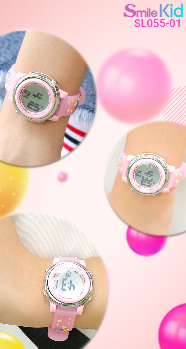 - Đồng hồ Smile Kid với kiểu dáng, mẫu mã năng động, dễ thương phù hợp cho các em nhỏ, đồng thời đồng hồ Smile Kid còn là bạn đồng hành cùng các bé khi đến trường.