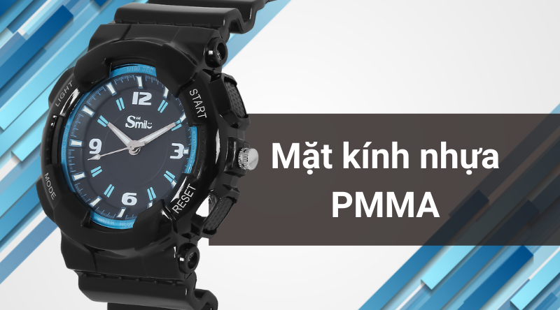 - Đồng hồ Smile Kid có khung viền làm từ nhựa ABS và dây đeo cũng được làm từ chất liệu nhựa không chỉ đem đến độ bền tối ưu, mà còn mang lại cảm giác thoải mái khi đeo. Mặt kính được làm từ nhựa PMMA có khả năng chịu lực tốt, khó vỡ.