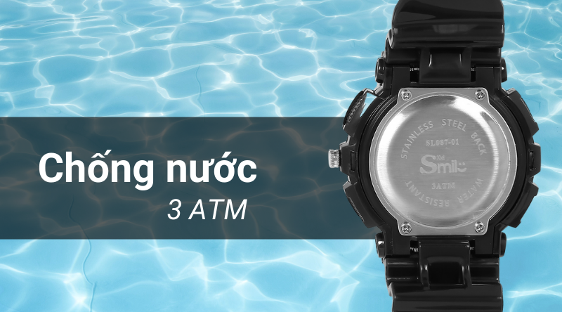 - Thông số chống nước của mẫu đồng hồ trẻ em này là 3 ATM, có thể cho bé sử dụng khi rửa tay và đi mưa. Lưu ý: không sử dụng khi đi tắm, đi bơi, lặn.- Mẫu đồng hồ này đến từ thương hiệu uy tín Smile Kid của Việt Nam – thương hiệu độc quyền của Thế giới di động. Những sản phẩm của Smile Kid luôn được thông qua quy trình sản xuất nghiêm ngặt, kiểm soát chất lượng chặt chẽ, do đó đây luôn là thương hiệu được nhiều bậc cha mẹ tin dùng khi lựa chọn sản phẩm đồng hồ cho con trẻ.