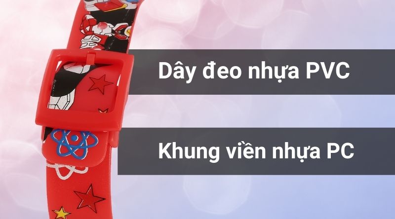 - Mẫu đồng hồ hoạt hình được trang bị chất liệu nhựa cho khung viền lẫn dây đeo đồng hồ giúp không chỉ đem đến độ bền tối ưu, mà còn mang lại cảm giác thoải mái khi đeo bởi trên thân dây được đục nhiều lỗ giúp thoáng khí và dễ dàng điều chỉnh kích thước phù hợp với cổ tay.