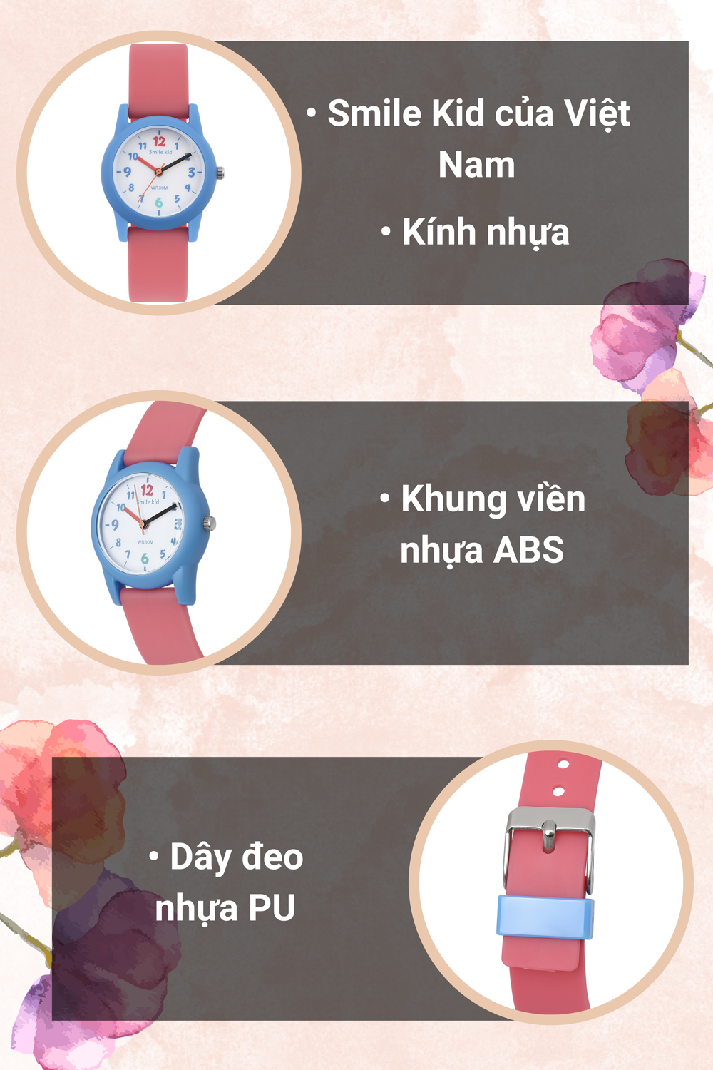 - Đồng hồ Smile Kid với kiểu dáng, mẫu mã năng động, dễ thương phù hợp cho các em nhỏ, đồng thời đồng hồ Smile Kid còn là bạn đồng hành cùng các bé khi đến trường.