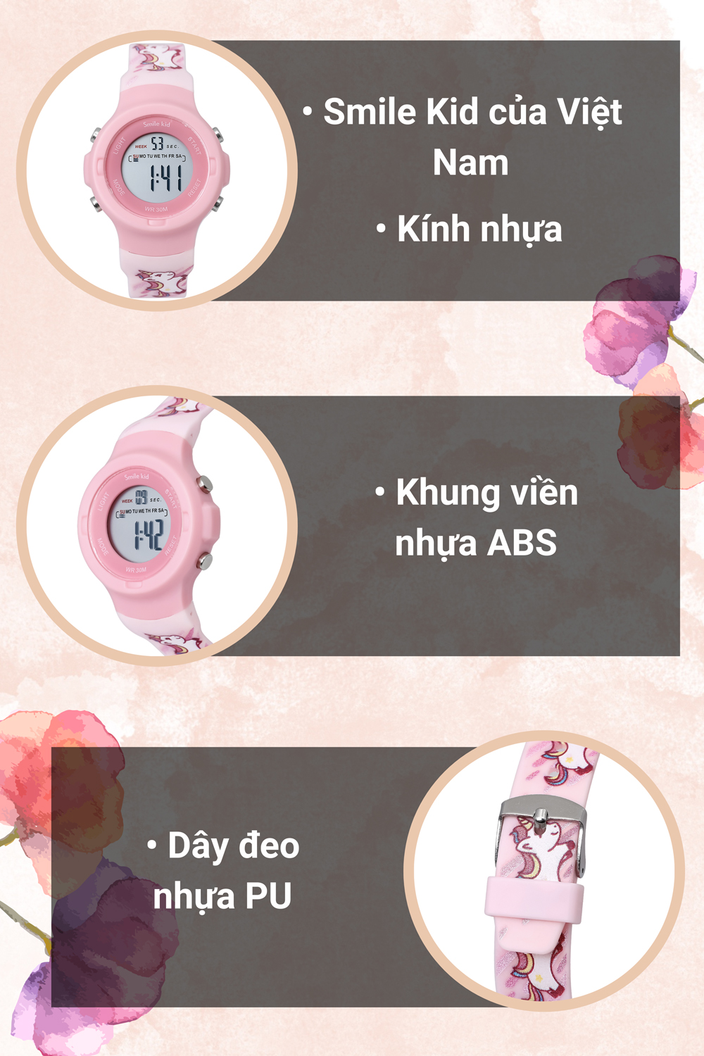 - Đồng hồ Smile Kid với kiểu dáng, mẫu mã năng động, dễ thương phù hợp cho các em nhỏ, đồng thời đồng hồ Smile Kid còn là bạn đồng hành cùng các bé khi đến trường.
