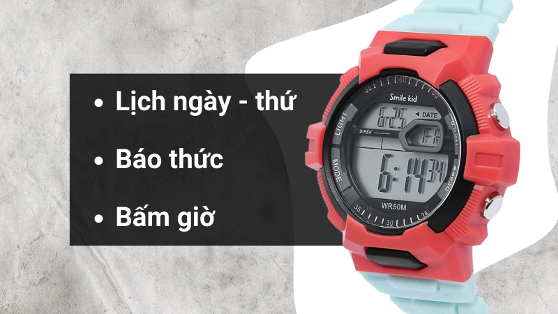 - Đồng hồ Smile Kid với kiểu dáng, mẫu mã năng động, dễ thương phù hợp cho các em nhỏ, đồng thời đồng hồ Smile Kid còn là bạn đồng hành cùng các bé khi đến trường.