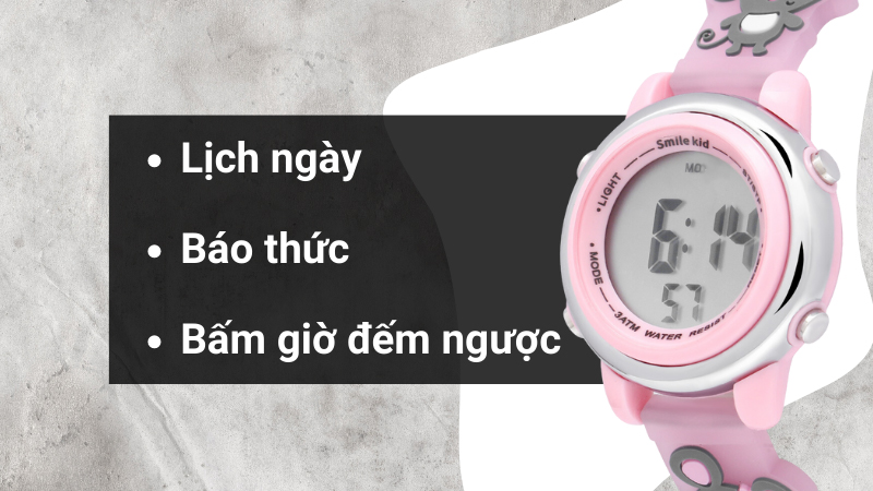 - Đồng hồ Smile Kid với kiểu dáng, mẫu mã năng động, dễ thương phù hợp cho các em nhỏ, đồng thời đồng hồ Smile Kid còn là bạn đồng hành cùng các bé khi đến trường.