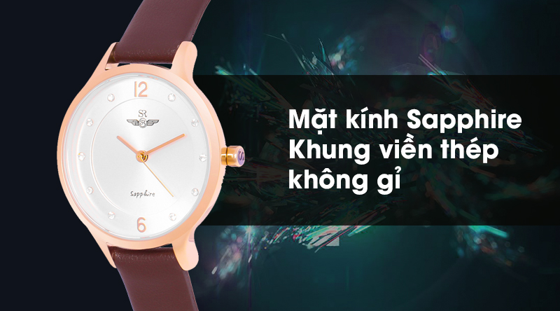 - Mặt kính đồng hồ SR Watch nữ có độ cứng cao, trong suốt, hầu như không thể bị phá vỡ.