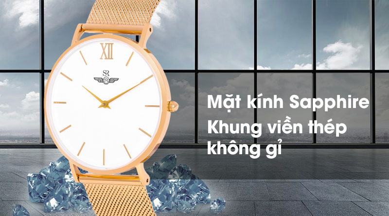 - Mặt kính chiếc đồng hồ SR Watch nam trong suốt và độ cứng cực cao, gần như không bị phá vỡ bởi các va đập thông thường.