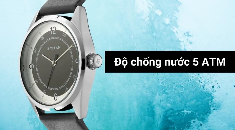 - Người dùng không phải lo sợ nước sẽ gây hư tổn đến đồng hồ khi rửa tay, đi mưa và đi tắm bởi vì đồng hồ Titan có hệ số chống nước lên đến 5 ATM. Lưu ý: không mang khi bơi lội hoặc lặn.
