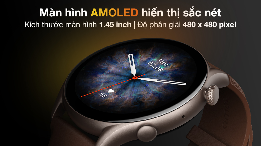 Với kích thước màn hình 1.45 inch, mặt kính cường lực độ phân giải 480 x 480 px được nâng cấp hơn thế hệ trước mang tới khả năng hiển thị hình ảnh sắc nét, độ tương phản cao. Hơn thế nữa, đồng hồ còn được trang bị tấm nền AMOLED tiết kiệm điện, hỗ trợ độ sáng lên đến 1000 nits giúp bạn dễ dàng xem mọi thông tin trong mọi điều kiện ánh sáng. Cùng với tốc độ làm mới màn hình cũng được nâng cấp, có thể nói màn hình của chiếc GTR 3 Pro có thể đem lại cho bạn những trải nghiệm hài lòng nhất trong các sản phẩm cùng phân khúc.