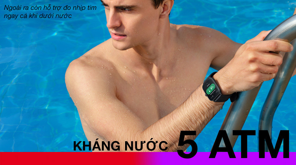 Với chuẩn kháng nước 5 ATM, ngang bằng những chiếc đồng hồ cao cấp truyền thống, người dùng có thể thoải mái sử dụng thiết bị khi đi mưa hay các hoạt động với cường độ không quá cao dưới nước.