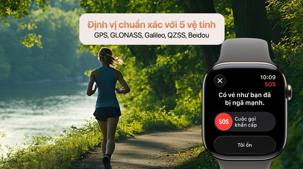 Song song đó, các tính năng an toàn thông minh như SOS khẩn cấp, Phát hiện ngã và Phát hiện va chạm giúp đồng hồ tự động gọi cứu hộ và chia sẻ vị trí của bạn khi có sự cố, mang lại sự an tâm trong mọi chuyến đi hoặc hoạt động hàng ngày.