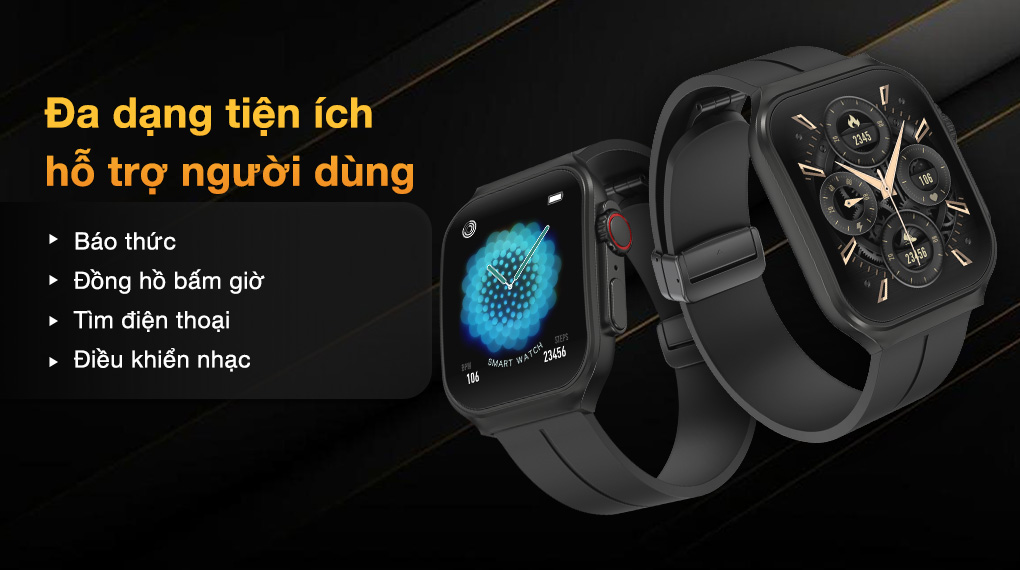 Bên cạnh các chức năng sức khỏe, thể thao thì chiếc đồng hồ thông minh này còn được tích hợp khá nhiều tiện ích như: Báo thức, tìm đồng hồ, điều khiển nhạc, đồng hồ bấm giờ, đồng hồ đếm ngược,... hỗ trợ người dùng rất nhiều trong công việc và cuộc sống.