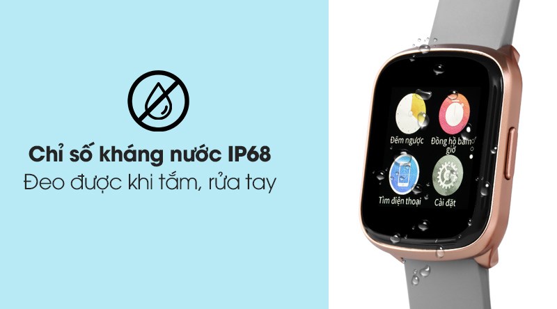 Đồng hồ đạt chuẩn kháng nước IP68, nghĩa là thiết bị có khả năng kháng nước ở độ sâu 1,5m trong vòng 30 phút.