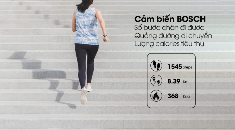 Với cảm biến này, khi hoàn thành một vòng chạy hay đi bộ đường dài, người dùng sẽ có đầy đủ và chính xác các số liệu về số bước chân đi được, quảng đường di chuyển được và lượng calories tiêu thụ. Giúp người dùng dễ dàng kiểm soát mục tiêu cá nhân.