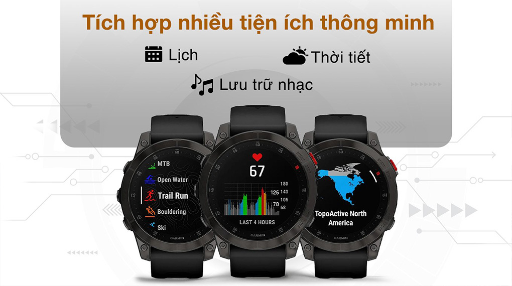 Đồng hồ thông minh Garmin được trang bị bộ nhớ trong 32 GB tạo một không gian lưu trữ cá nhân, người dùng có thể tải những bài hát yêu thích về để nghe khi tập luyện. Bên cạnh đó, đồng hồ còn có những tính năng khác như: Báo thức, tìm điện thoại, dự báo thời tiết, điều khiển chơi nhạc,...