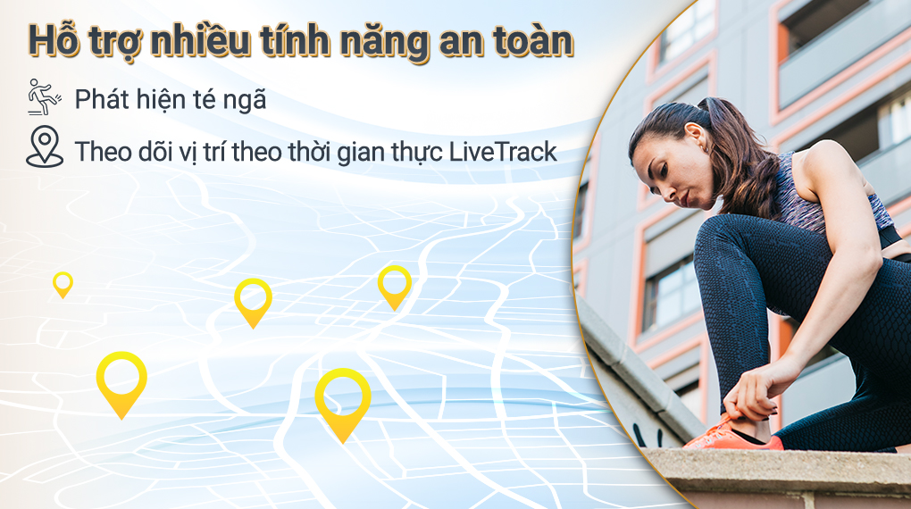 Đồng hồ thông minh Garmin được trang bị tính năng LiveTrack tiên tiến, cho phép bạn chia sẻ vị trí luyện tập theo thời gian thực với gia đình, bạn bè. Nhờ vậy, bạn có thể an tâm rèn luyện một mình mà vẫn đảm bảo an toàn.