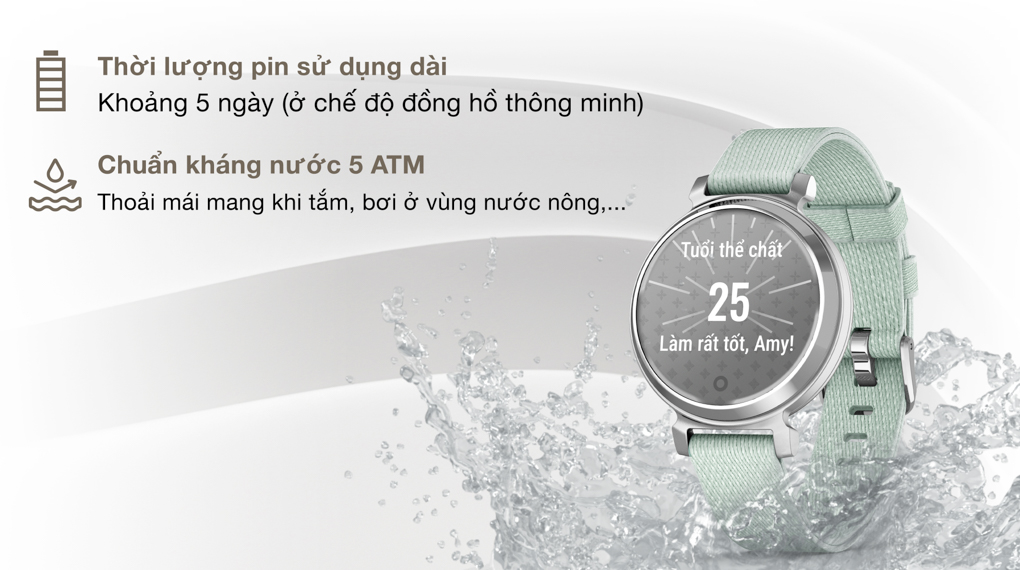Tận hưởng sự tiện lợi với khả năng kháng nước 5 ATM của đồng hồ thông minh Garmin. Bạn có thể thoải mái đeo đồng hồ khi rửa tay, tắm rửa, bơi lội ở vùng nước nông,... mà không lo hư hỏng hay hoạt động kém hiệu quả. Tuy nhiên, để đảm bảo tuổi thọ cao cho thiết bị, bạn nên lưu ý không rửa với nước nóng, không đem vào phòng xông hơi, không bấm các nút khi đang ở trong nước,...