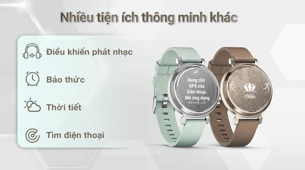 Ngoài những tính năng sức khỏe và thể thao bên trên thì Garmin Lily 2 còn mang đến cho bạn trải nghiệm tuyệt vời với các tiện ích thông minh như tìm điện thoại, dự báo thời tiết, báo thức, đồng hồ bấm giờ,...