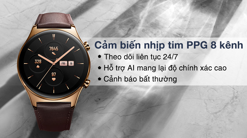 Đồng hồ thông minh được trang bị cảm biến nhịp tim PPG 8 kênh hỗ trợ trí thông minh nhân tạo AI cho khả năng theo dõi nhịp tim liên tục 24/7. Trường hợp nhịp tim có sự thay đổi bất thường thì đồng hồ sẽ gửi cảnh báo để người dùng chăm sóc cơ thể hiệu quả hơn.