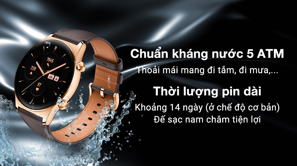 Người dùng có thể thoải mái đeo đồng hồ thông minh cả khi tắm, đi mưa, rửa tay,... mà không cần phải lo lắng nước xâm nhập vào bên trong với chuẩn kháng nước 5 ATM. Tuy nhiên, người dùng cần lưu ý không đeo đồng hồ khi tiếp xúc với nước nóng, hóa chất, không đem vào phòng xông hơi,...