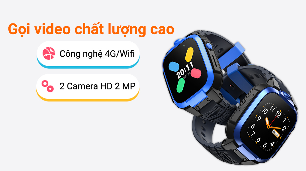 Chiếc đồng hồ này được trang bị camera kép 2 MP, chỉ cần kết nối với 4G hoặc Wifi là bé đã có thể gọi video cho người thân hoặc ngược lại. Phụ huynh có thể yên tâm hơn khi đưa bé đến trường hoặc lúc bé tham gia các chuyến vui chơi xa cùng với lớp. Bé cũng có thể dùng chiếc đồng hồ thông minh này để chụp ảnh, lưu lại những khoảnh khắc đặc biệt.