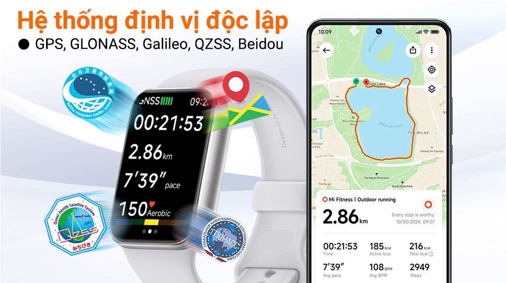 Một trong những cải tiến đáng giá nhất trên vòng đeo tay thông minh Band 9 Pro chính là hệ thống định vị độc lập GNSS, hỗ trợ nhiều hệ thống vệ tinh hàng đầu như GPS, GLONASS, Galileo, Beidou và QZSS.