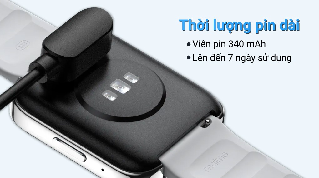 Đồng hồ thông minh sở hữu viên pin 340 mAh theo thông tin của hãng thì thời lượng sử dụng lên đến 7 ngày và chỉ cần chờ đợi khoảng 2 tiếng 30 phút để có thể sạc đầy pin cho thiết bị. Với khoảng một tuần sử dụng không cần sạc lại bạn có thể đem đồng hồ thông minh trong các chuyến công tác, du lịch mà không lo bị gián đoạn.