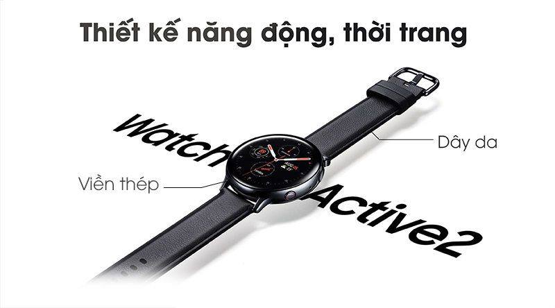 Samsung Galaxy Watch Active 2 44mm vẫn là bản mặt tròn quen thuộc mang đến sự đơn giản nhưng không kém phần tinh tế, trọng lượng chỉ 42g, dây da mền mại ôm khít cổ tay tạo cho người đeo cảm giác thoải mái.