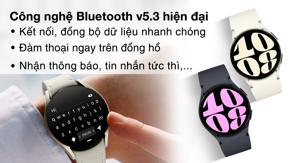 Đồng hồ hỗ trợ kết nối không dây Bluetooth v5.3 cho đường truyền ổn định, đồng bộ thông báo, tin nhắn,... nhanh chóng. Trước khi bắt đầu sử dụng thì bạn cần tải ứng dụng quản lý Galaxy Wearable trên điện thoại và liên kết với đồng hồ thông minh. Bạn cũng có thể nhận được cuộc gọi đến ngay trên đồng hồ, những lúc bận rộn cũng không lo bỏ lỡ cuộc gọi quan trọng từ gia đình hay công ty.