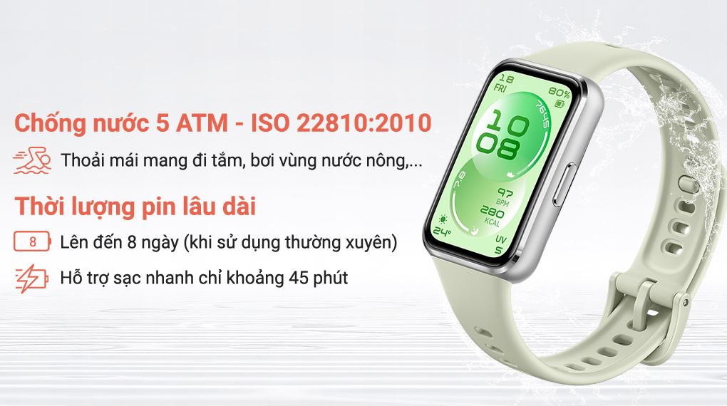 Chuẩn kháng nước 5 ATM cho phép sử dụng khi rửa tay, đi mưa hoặc bơi ở vùng nước nông. Tuy nhiên, để đảm bảo độ bền lâu dài, nên hạn chế tiếp xúc với nước nóng, phòng xông hơi hoặc hóa chất mạnh.