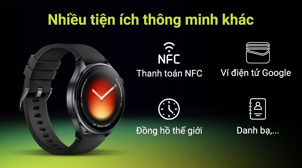 Không chỉ dừng lại ở chức năng theo dõi sức khỏe và luyện tập, đồng hồ thông minh Mi Watch còn tích hợp nhiều tiện ích hỗ trợ cuộc sống hiện đại như thanh toán NFC, sử dụng Google Wallet, tìm điện thoại, điều khiển nhạc,... đồng hành cùng người dùng trong mọi hoạt động hằng ngày.